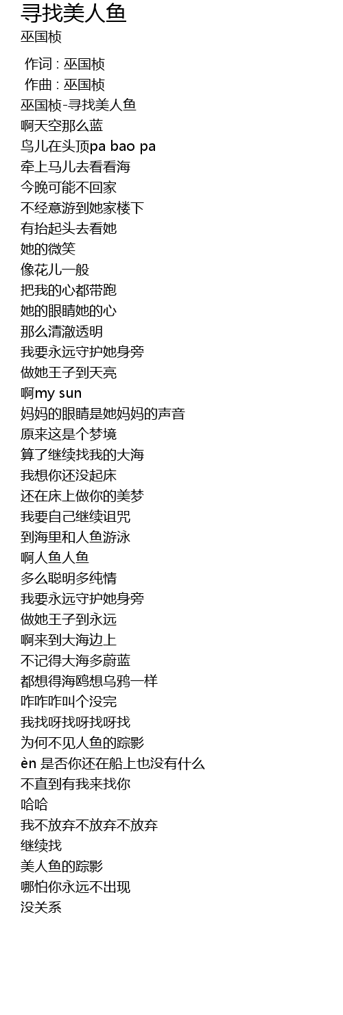 | [00:00.331] | 巫国桢-寻找美人鱼 |
