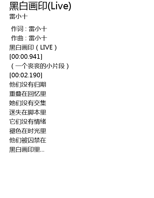 | [00:40.429] | hēi bái huà yìn lǐ... |