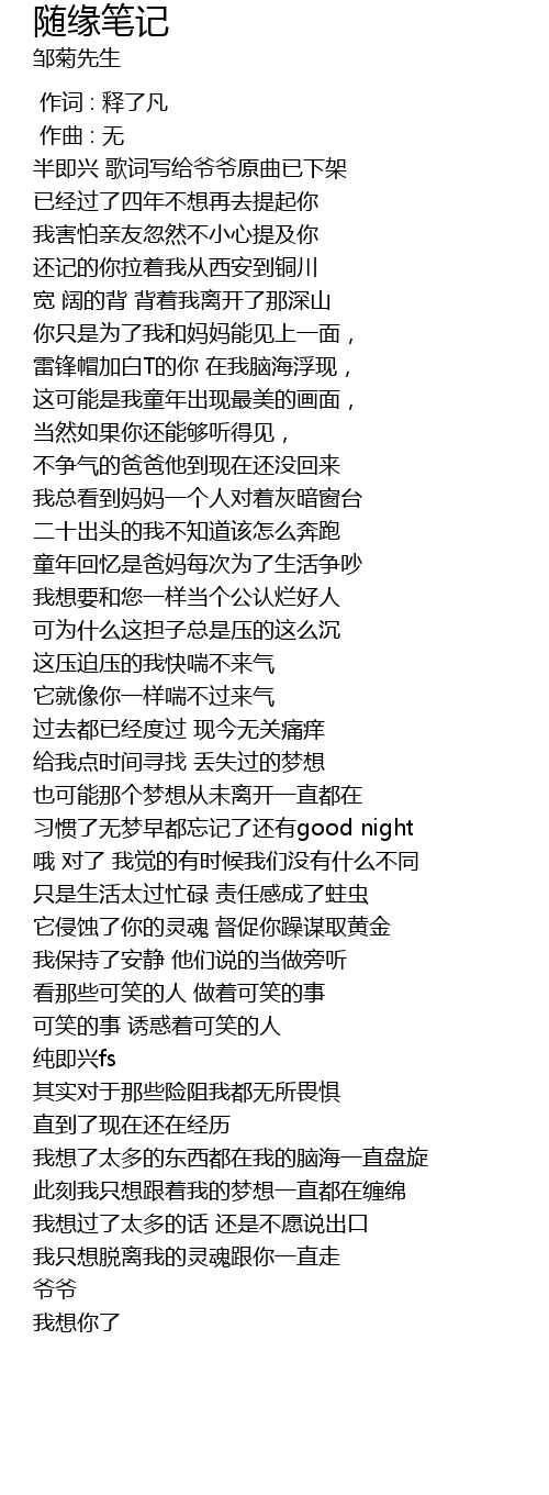 | [00:02.000] | 半即兴 歌词写给爷爷原曲已下架 |