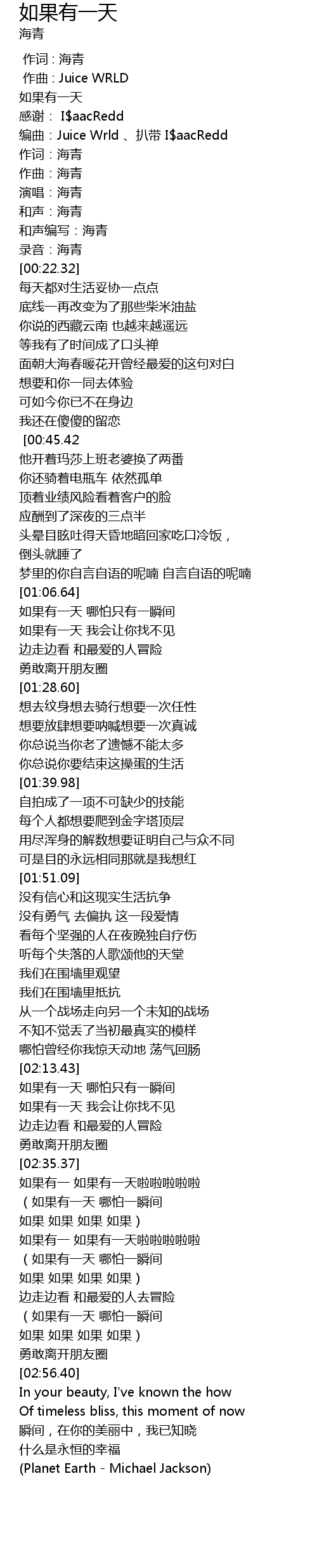 | [00:15.18] | 和声:海青 |