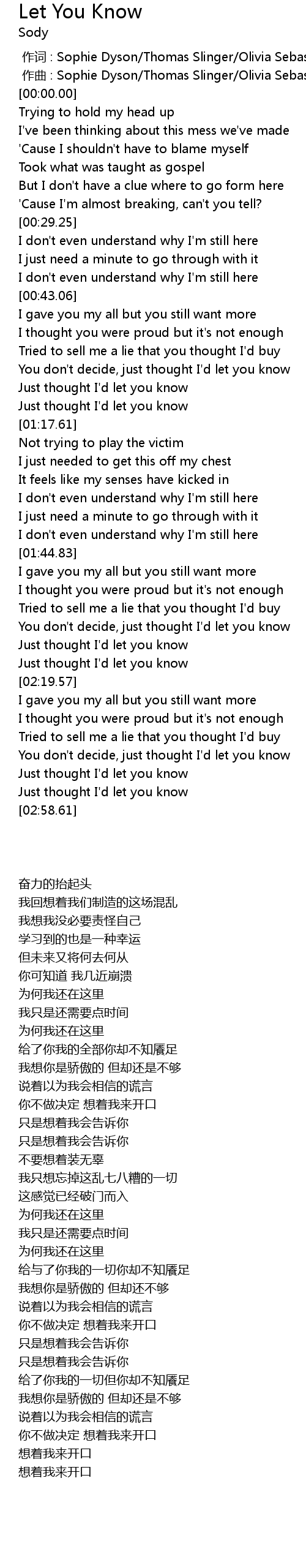 | [00:58.38] | You don' t decide, just thought I' d let you know |