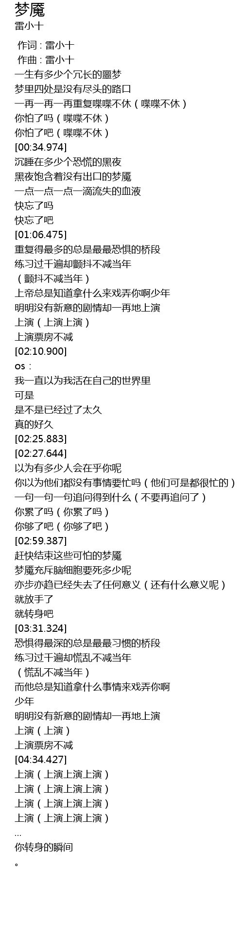 | [03:00.396] | 赶快结束这些可怕的梦魇 |
