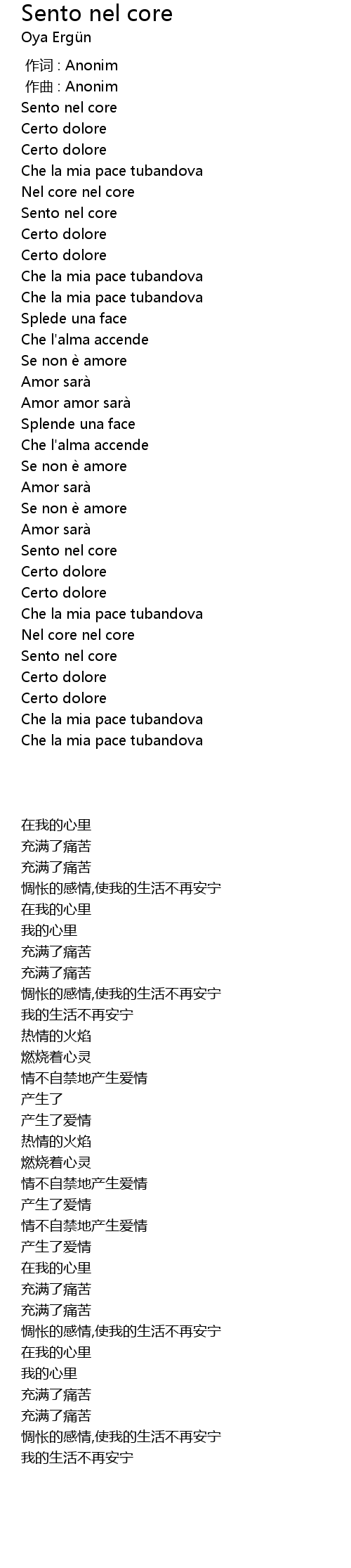 | [00:55] | Che la mia pace tubandova |