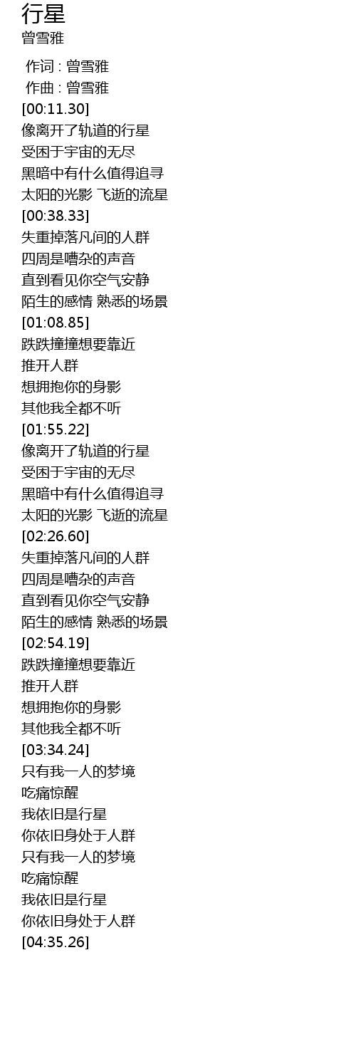 | [00:15.34] | xiàng lí kāi le guǐ dào de xíng xīng |