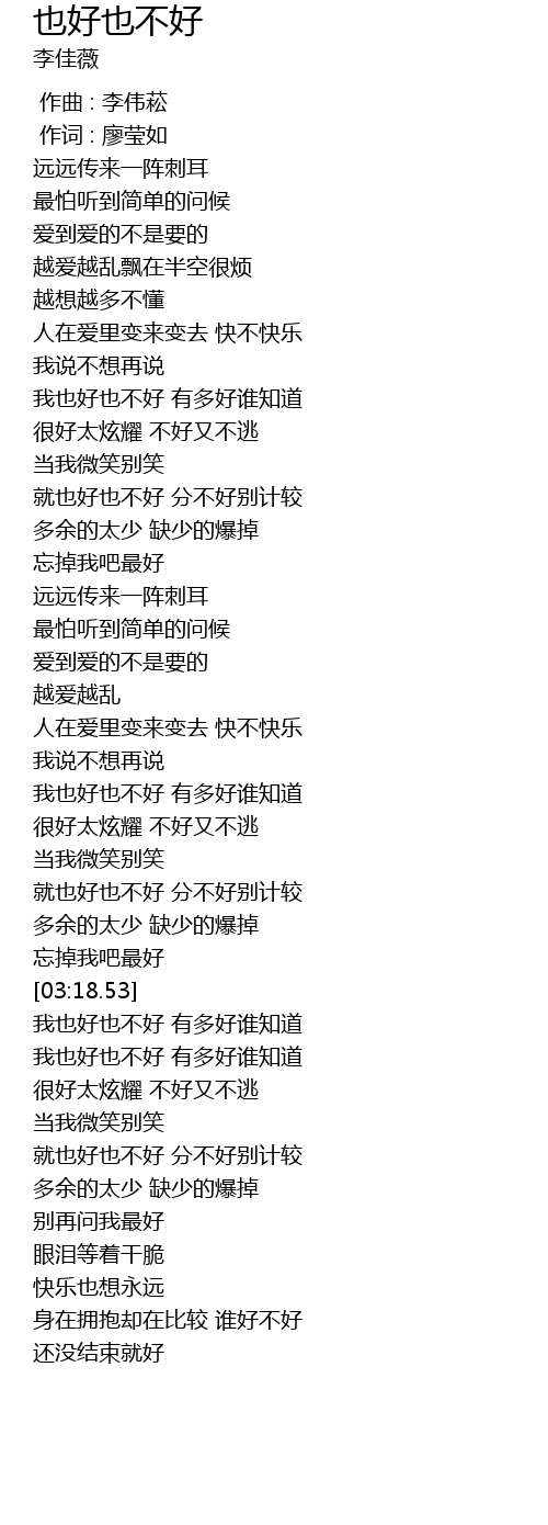 | [03:01.31] | 就也好也不好 分不好别计较 |