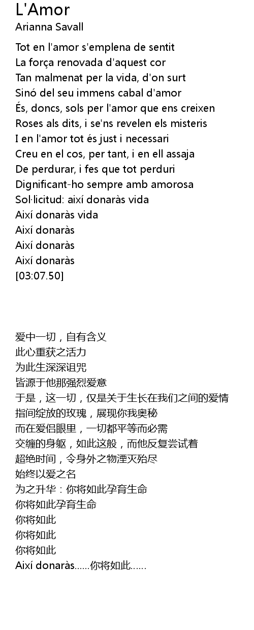 | [00:51.00] | Tot en l' amor s' emplena de sentit |