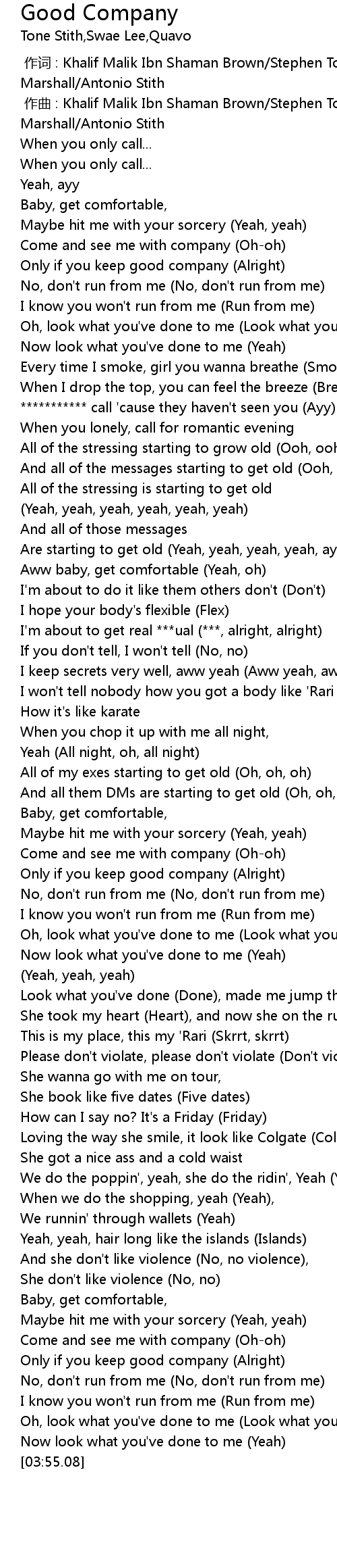 | [03:33.15] | Come and see me with company (Oh-oh) |