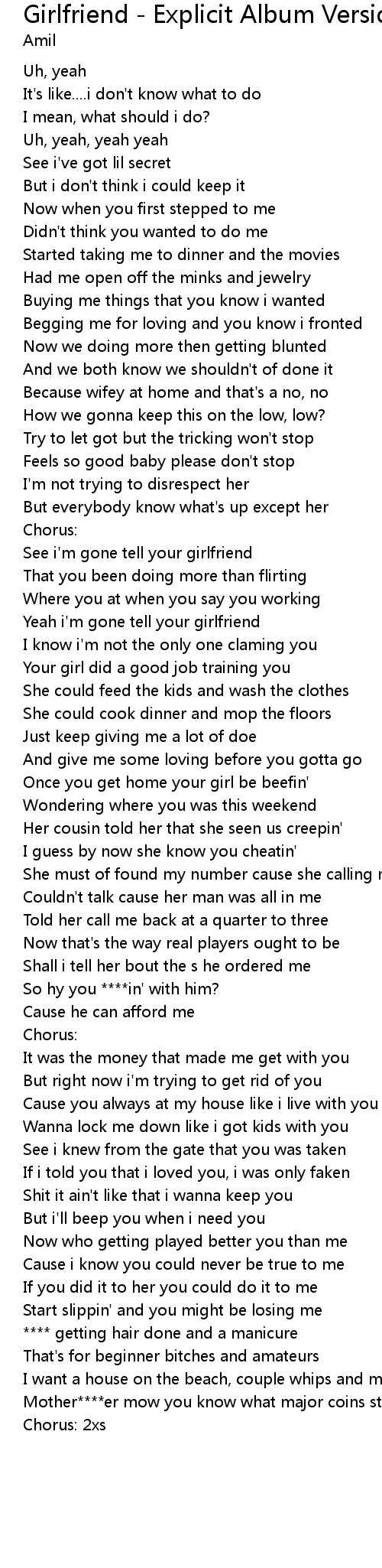 Yeah i'm gone tell your girlfriend |