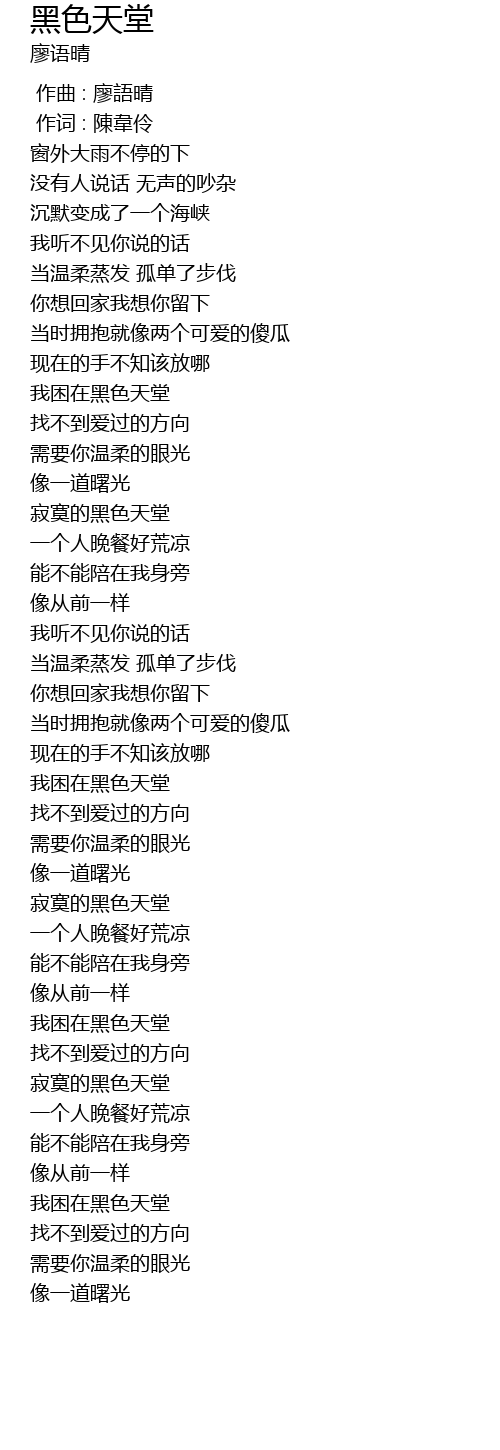 | [03:32.96] | jì mò de hēi sè tiān táng |