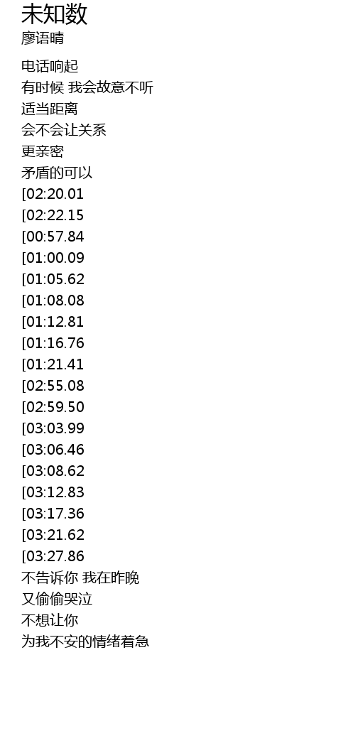 | [03:55.45][02:55.08][01:26.67] | 未来是未知数 |