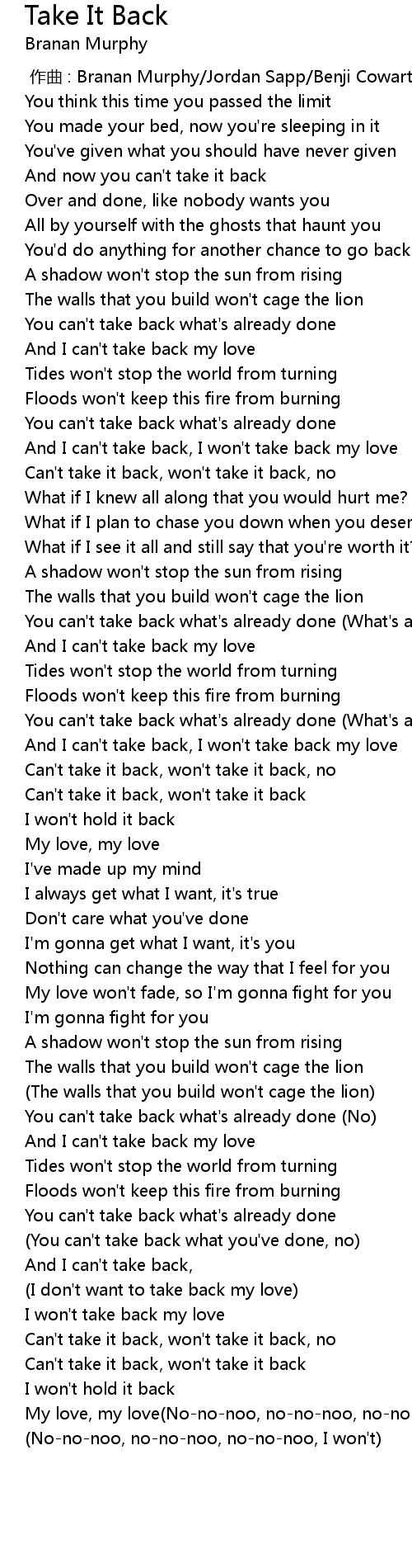 | [02:03.33] | Can' t take it back, won' t take it back |