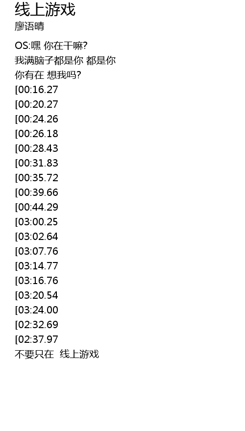 | [04:04.72][02:37.97][01:23.03] | 线上游戏 |