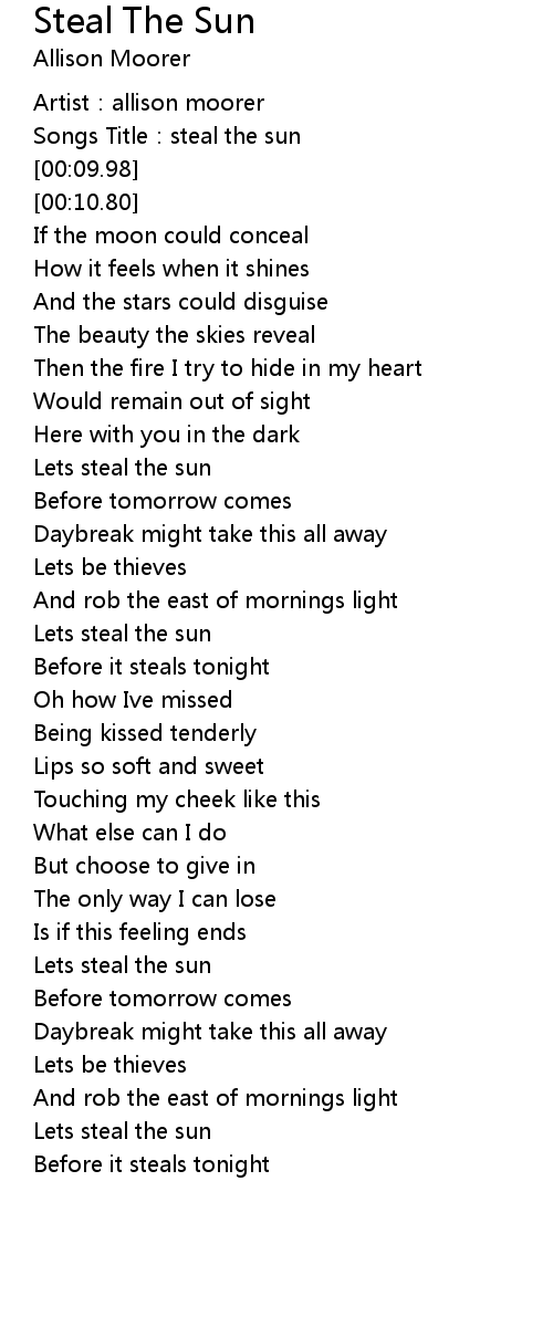 | [00:08.11] | Songs Title: steal the sun |