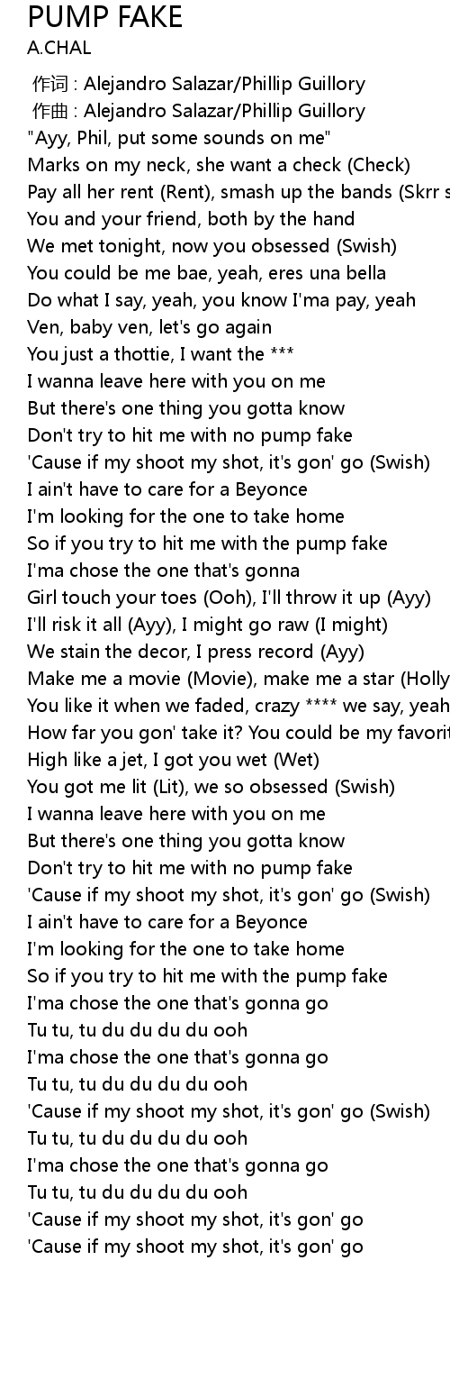 | [01:42.34] | Don't try to hit me with no pump fake |