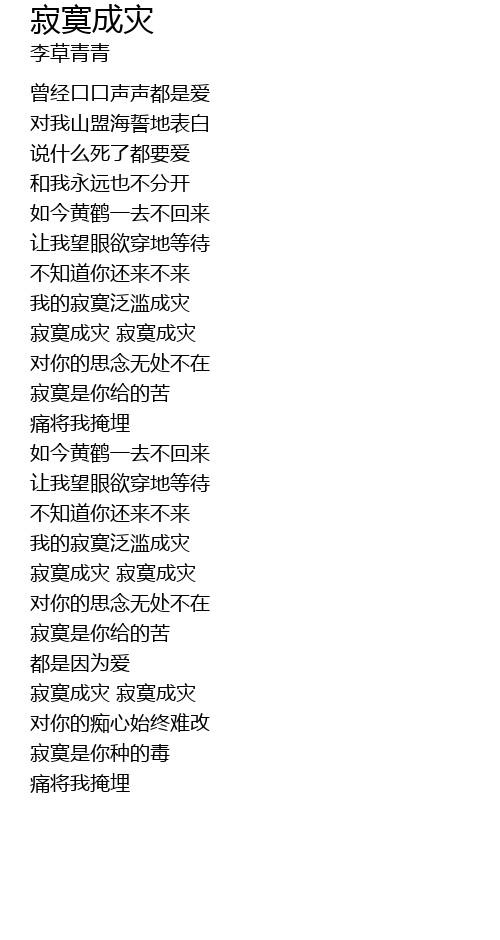 | [02:15.14] | 寂寞成灾 寂寞成灾 |