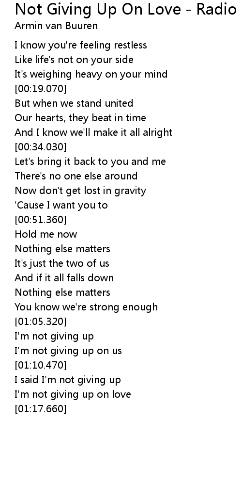 Not Giving Up On Love - Radio Edit Lyrics