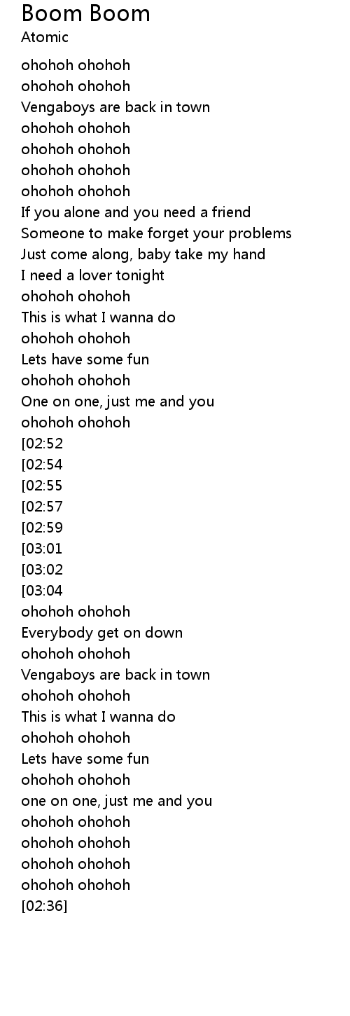 | [03:12][02:59][02:03][01:49][01:01] | Boom Boom Boom Boom!! |