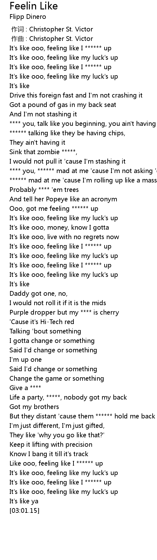 | [00:43.72] | It' s like ooo, feeling like my luck' s up |