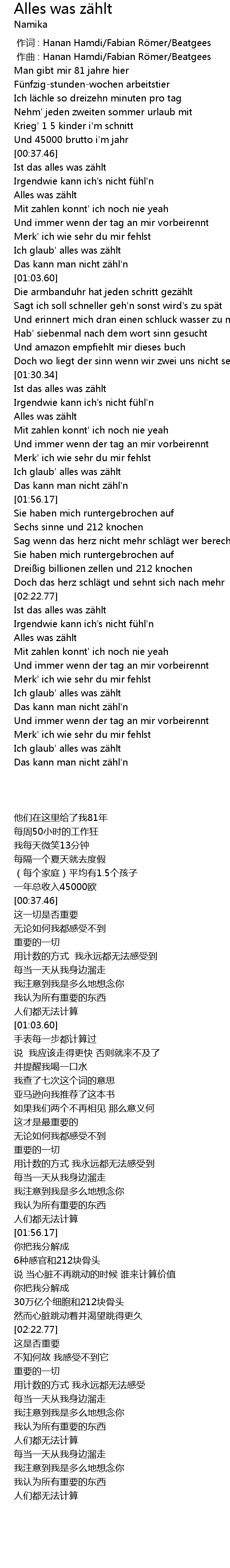| [02:05.82] | Sag wenn das herz nicht mehr schlägt wer berechnet den wert |