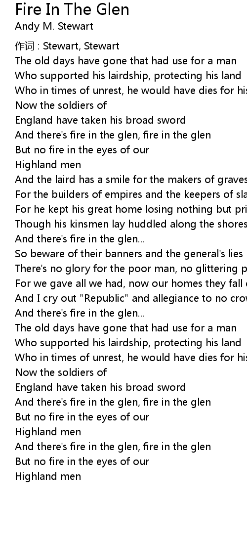 | And there's fire in the glen, fire in the glen | |