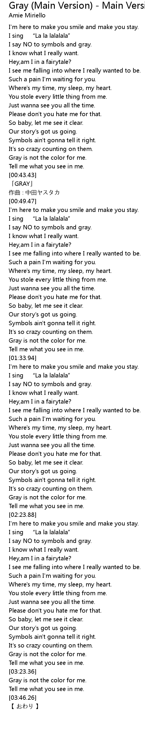 | [02:01.03] | Where' s my time, my sleep, my heart. |