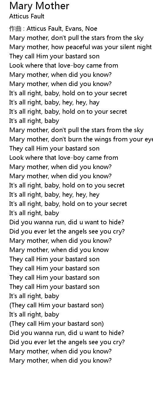 | Mary mother, when did you know | |