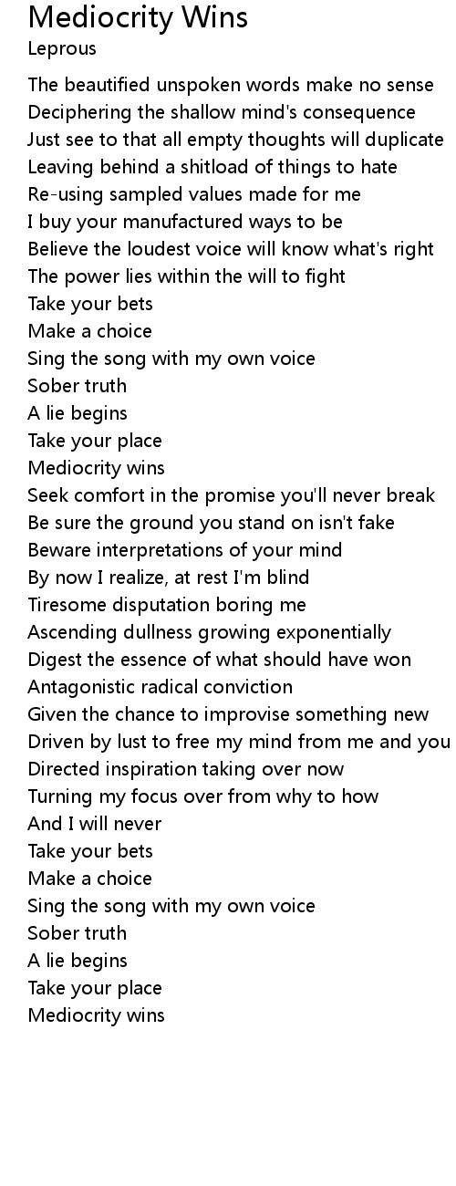 Mediocrity Wins Lyrics