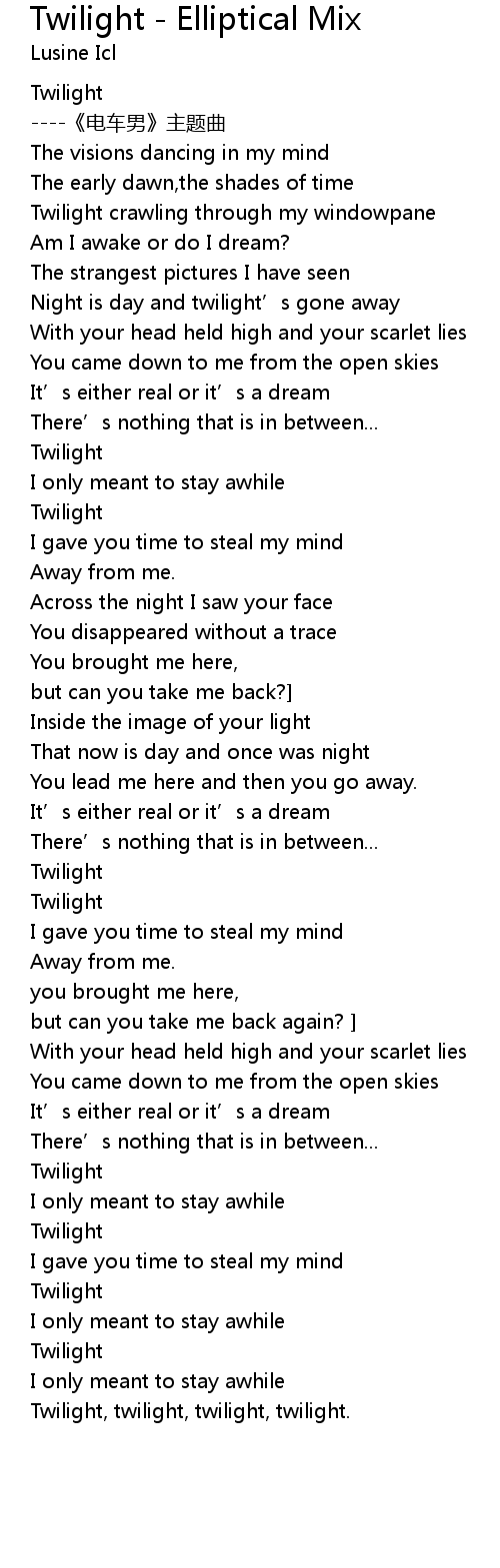 | Song | Twilight - Elliptical Mix |