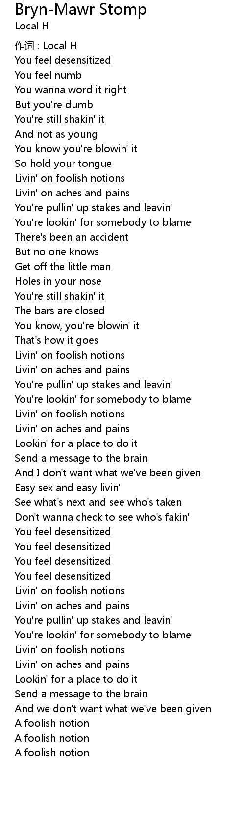 | 作词 : Local H | |