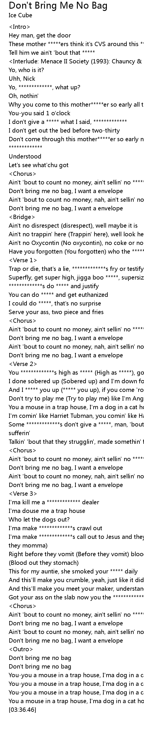 Ain't 'bout to count no money, nah, ain't sellin' no ************* |