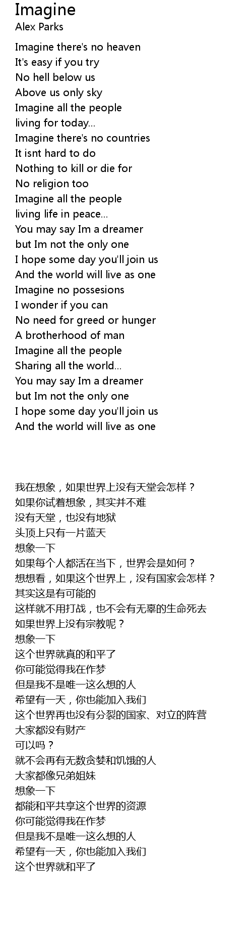 | [00:44.600] | Imagine all the people |