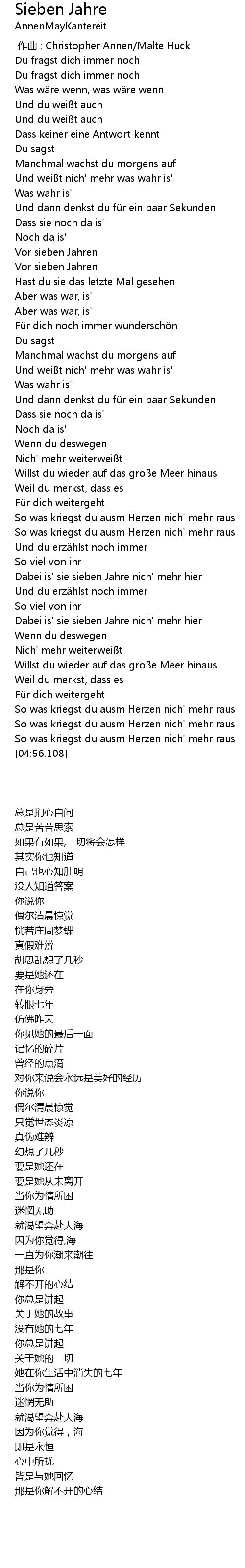 | [03:43.154] | Dabei is' sie sieben Jahre nich' mehr hier |