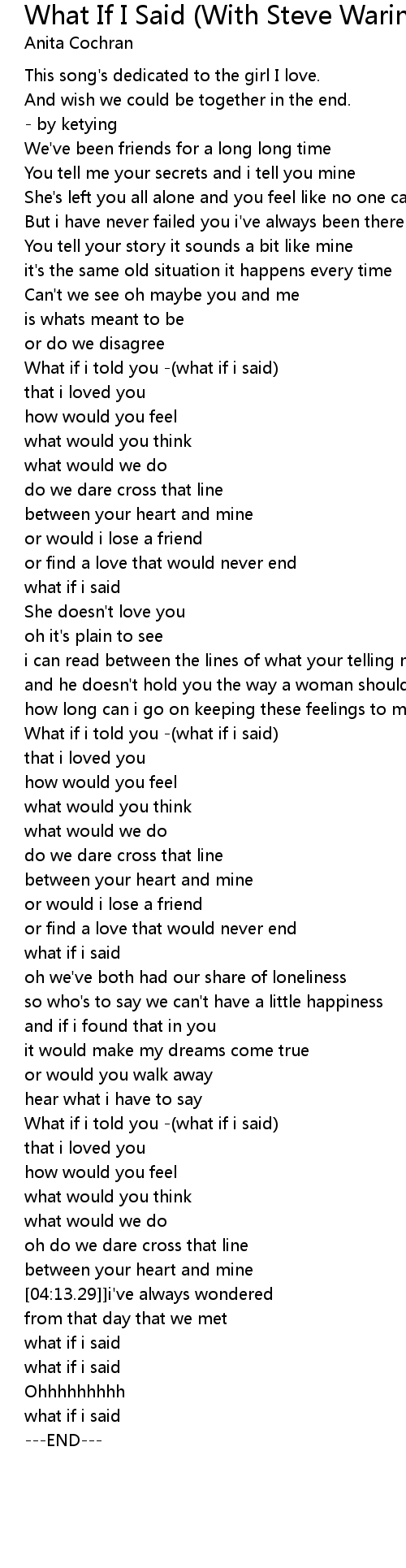 What If I Said (With Steve Wariner) (Album Version) Lyrics