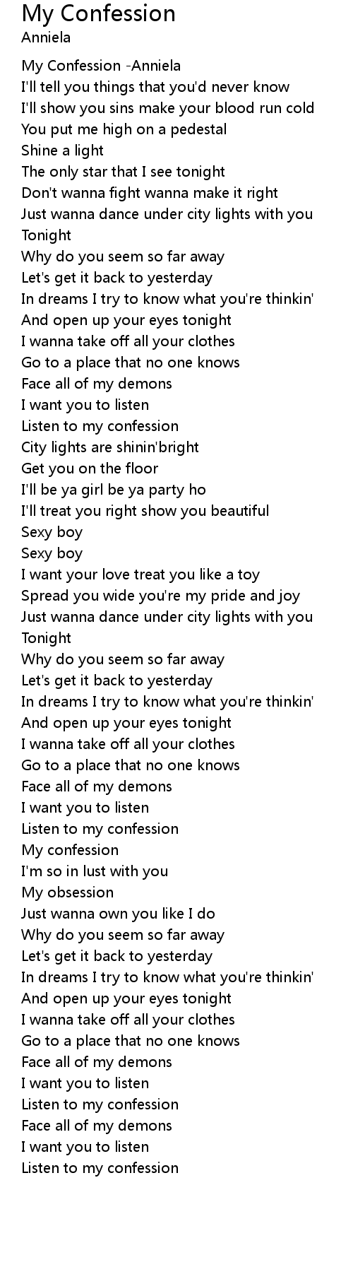 | [03:31.263] | Listen to my confession |