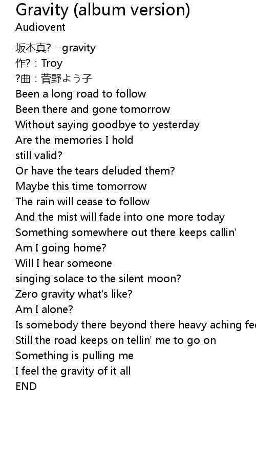 | [00:00.00] | bǎn běn zhēn? gravity |