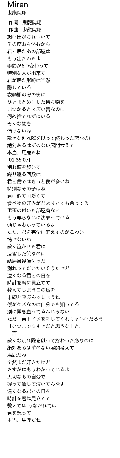 | [03:54.24] | 散々な別れ際を以って終わった恋なのに |