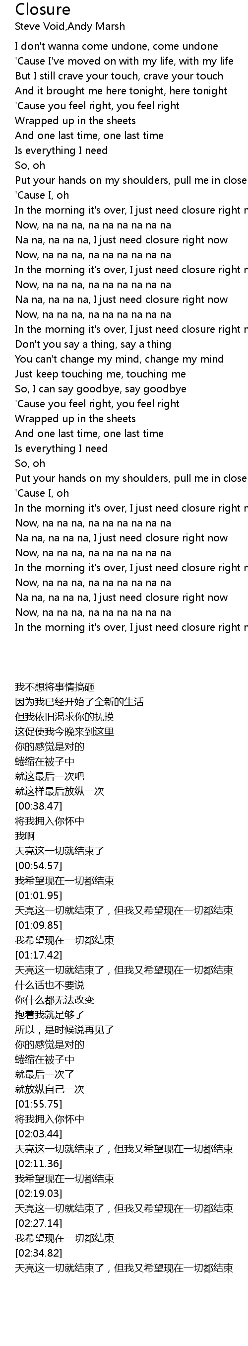 Na na, na na na, I just need closure right now |