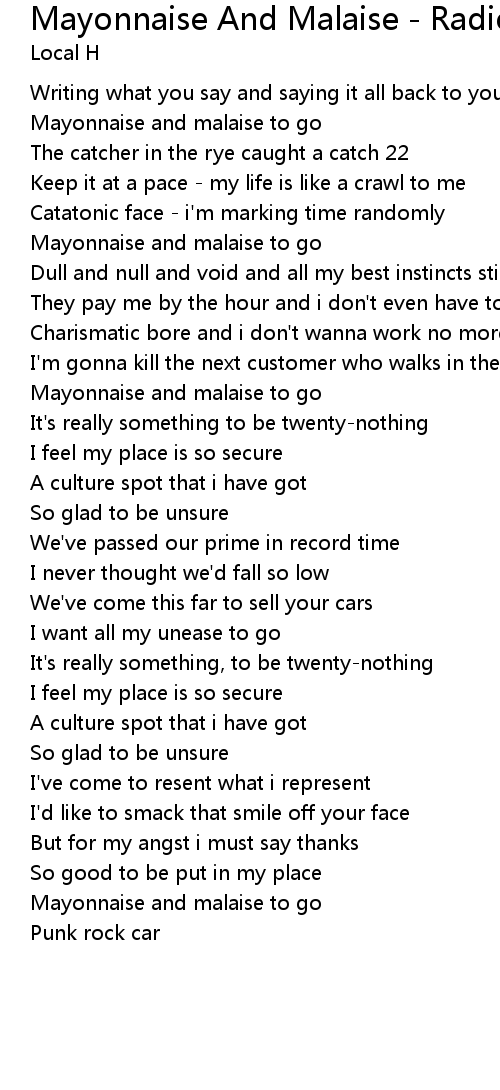 Mayonnaise And Malaise - Radio Edit Lyrics