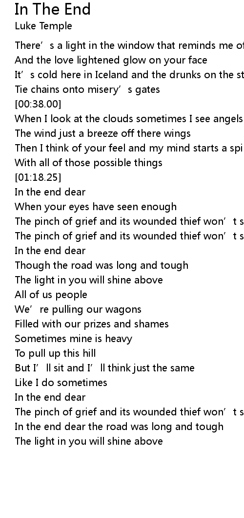 | [02:36.00] | The pinch of grief and its wounded thief won' t steel your love |