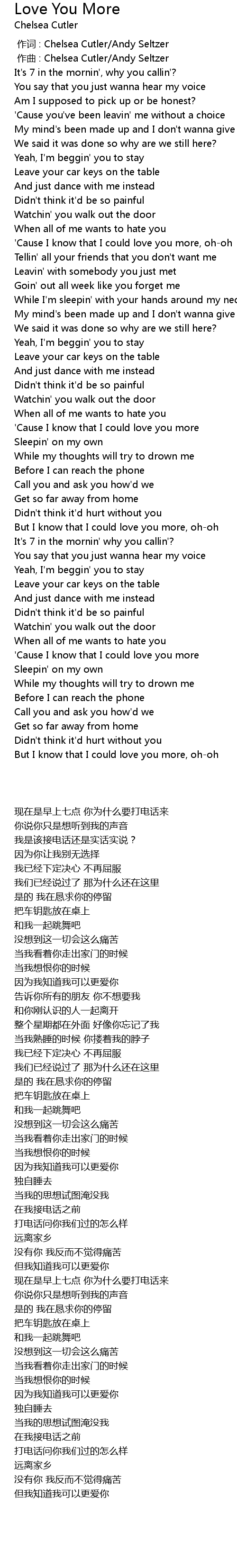 | [00:51.05] | ' Cause I know that I could love you more, ohoh |