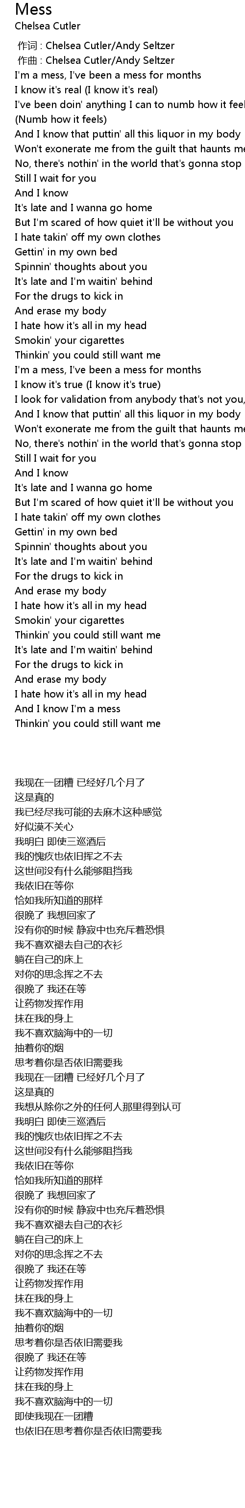 | [03:11.94] | And I know I' m a mess |