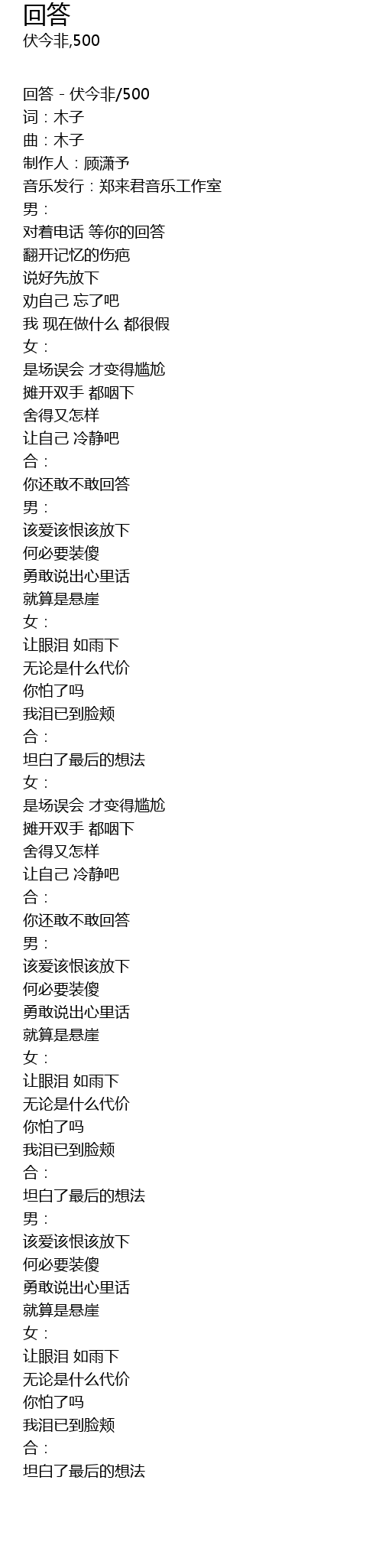 | 回答 - 伏今非/500 | |