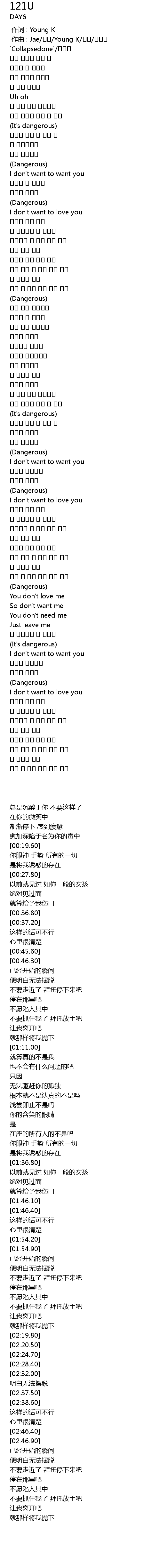 | [00:01.000] | 作曲 : Jae/성진/Young K/원필/이우민 `Collapsedone`/홍지상 |