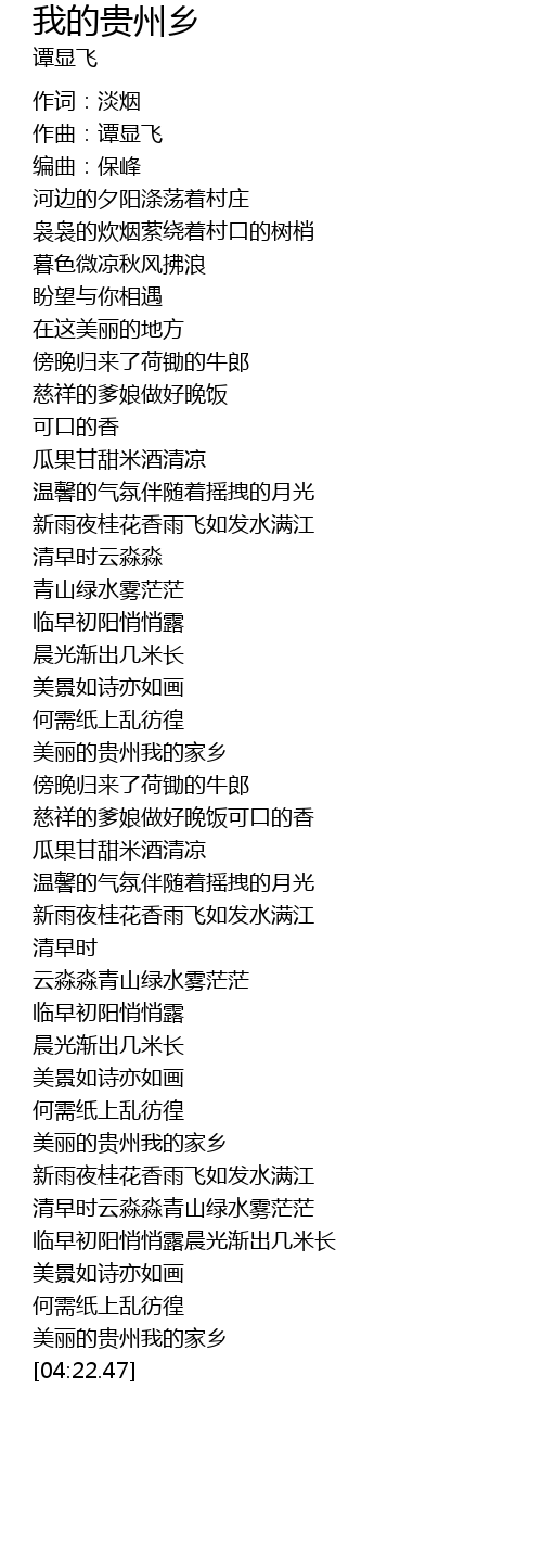 | [04:13.33] | 美丽的贵州我的家乡 |