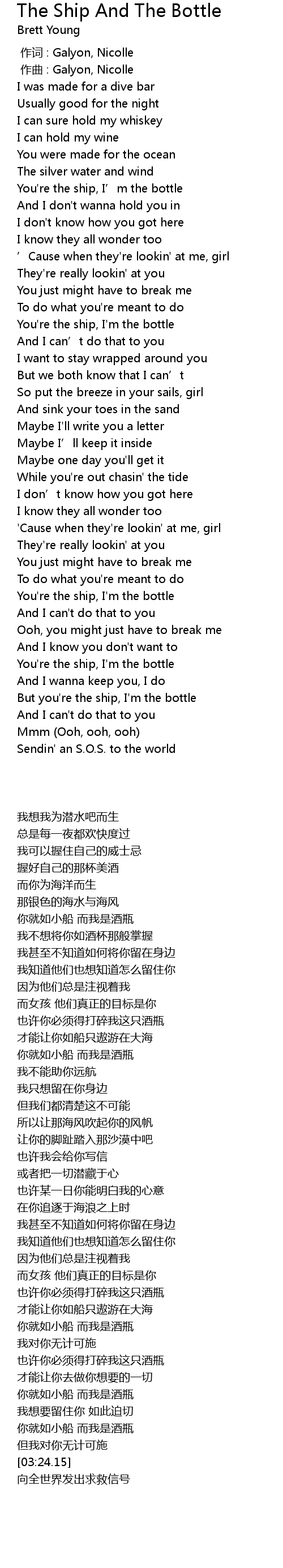 | [03:02.25] | But you're the ship, I'm the bottle |