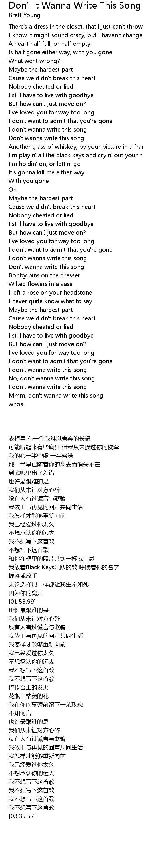 Don’t Wanna Write This Song Don' t Wanna Write This Song Lyrics