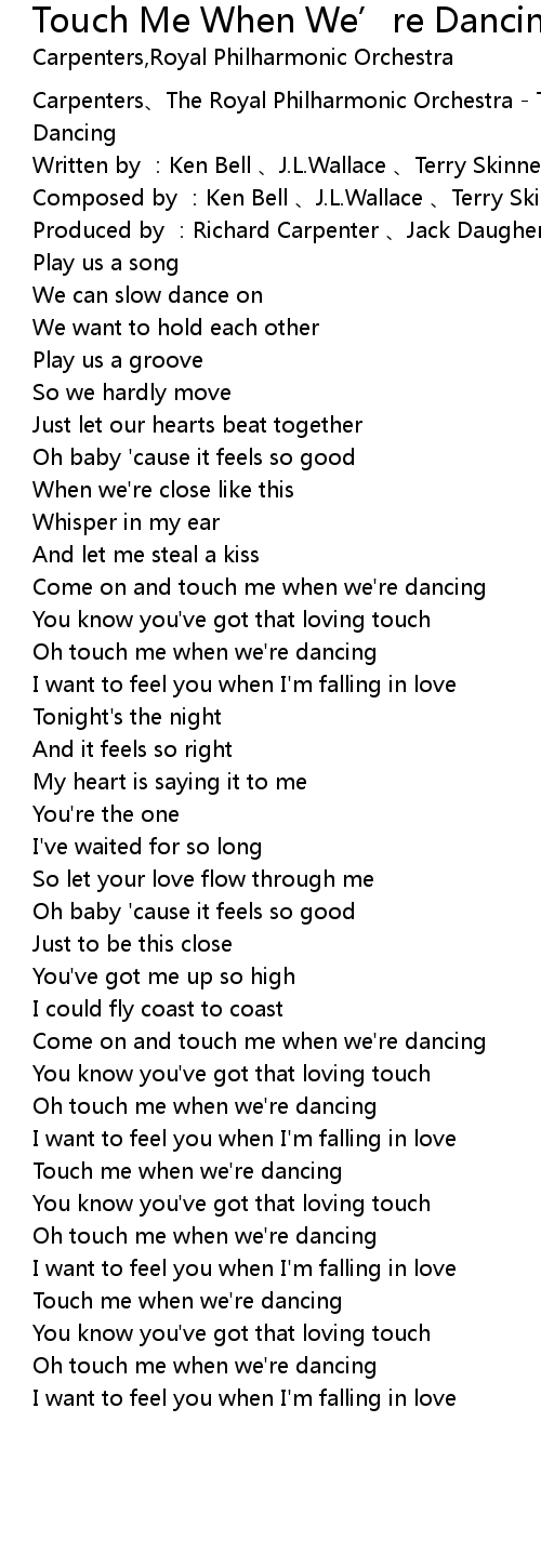 | [00:00.93] | Carpenters The Royal Philharmonic Orchestra Touch Me When We' re Dancing |