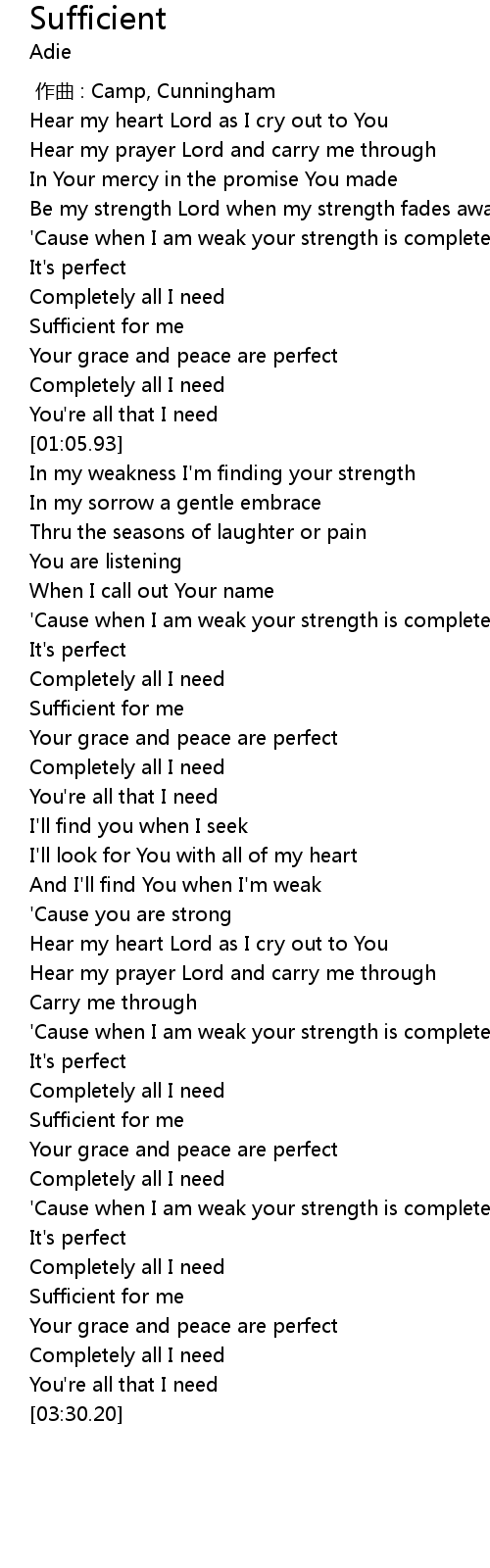 | [03:01.75] | 'Cause when I am weak your strength is complete |