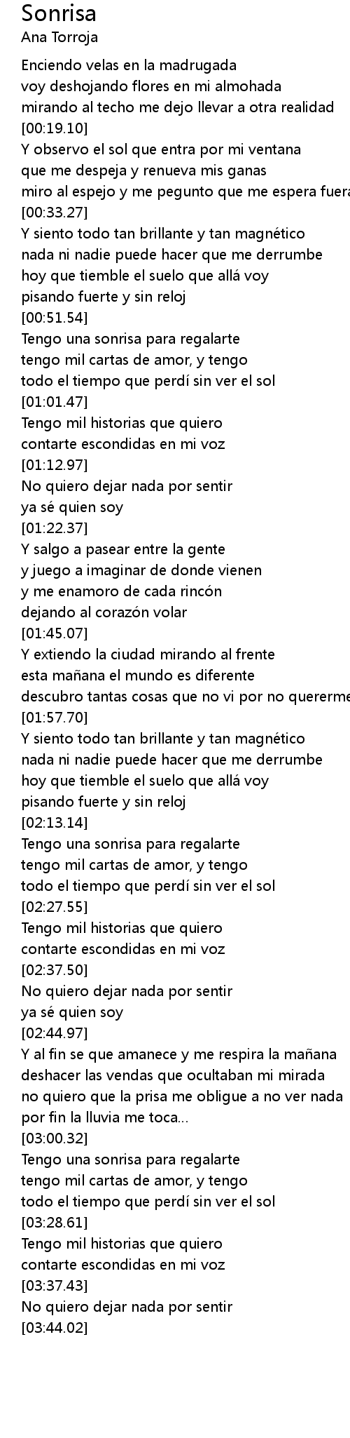 | [00:52.53] | Tengo una sonrisa para regalarte |