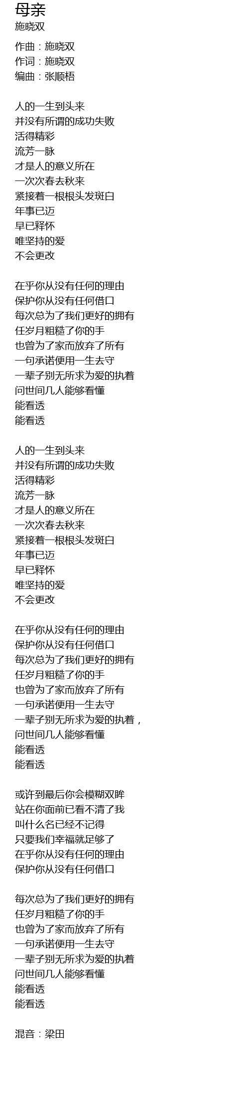 | 作词:施晓双 | |